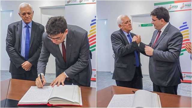 O governador Rafael Fonteles transmitiu o cargo para o seu vice, Themístocles Filho, na tarde desta sexta-feira (20), para cumprir missão oficial no continente asiático. A assinatura aconteceu no Salão Azul do Palácio de Karnak e contou com a presença de secretários e representantes públicos. A agenda no exterior do chefe de Executivo estadual será de 21 de outubro a 4 de novembro, passando pela China, Japão e Coreia do Sul.