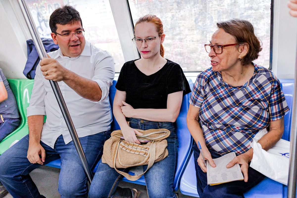 O governador Rafael Fonteles vistoriou, nesta segunda-feira (10), parte das obras de expansão do Metrô de Teresina, na zona sudeste de capital. O chefe do Executivo estadual embarcou na estação do Dirceu II, passando pelo trajeto que engloba as estações do Parque Ideal, Renascença I e terminando na Boa Esperança, que está sendo construída nesta fase de reforma. Desde janeiro, o transporte público funciona com tarifa zero.