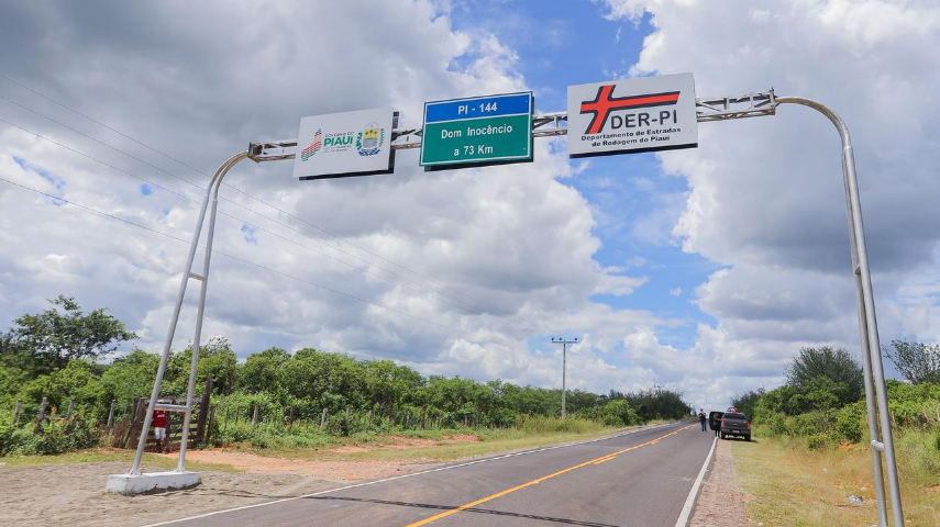 PI -144 RECUPERADA: Outra obra inaugurada foi a restauração da PI-144, entre São Lourenço do Piauí e Dom Inocêncio, abrangendo 73km. Este projeto, financiado pelo Tesouro Estadual com um montante de R$ 7 milhões, incluiu serviços de drenagem, restauração e sinalização.