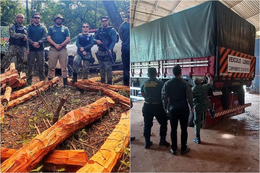 Durante as ações, também foram realizadas apreensões relevantes: 60 m³ de madeira serrada, um caminhão modelo Scania R540 e duas carretas utilizadas no transporte ilegal de madeira.