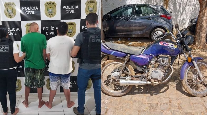 Uma equipe da Polícia Civil foi acionada e iniciou diligências com o apoio da Polícia Militar. Pouco tempo depois, os autores foram localizados e presos. Ambos, identificados pelas iniciais F. dos S. M. e A. da C. C., foram autuados em flagrante delito e permanecem à disposição da Justiça.