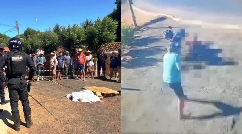 Câmeras de segurança registraram o momento do crime. As imagens mostram o idoso observando a aproximação de três pessoas: João Feitosa com uma faca, uma mulher com um filhote e outro homem com uma pedra. Pouco depois, Josiel Feitosa chega de moto.