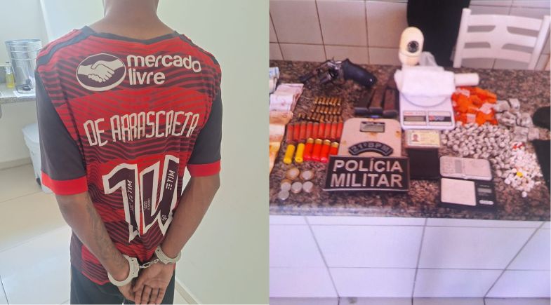 Durante a ação, os policiais encontraram um revólver dentro de uma bolsa contendo drogas e dinheiro. No interior da residência, foram apreendidos ainda:
