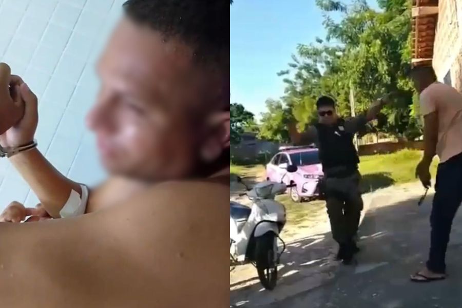 Imagens registradas por populares mostram o momento em que a equipe policial está na residência e Jadielson aparece na porta. Nesse instante, ocorre uma breve discussão, durante a qual o suspeito empurra um dos agentes. A abordagem se intensifica, e os policiais utilizam spray contra ele.