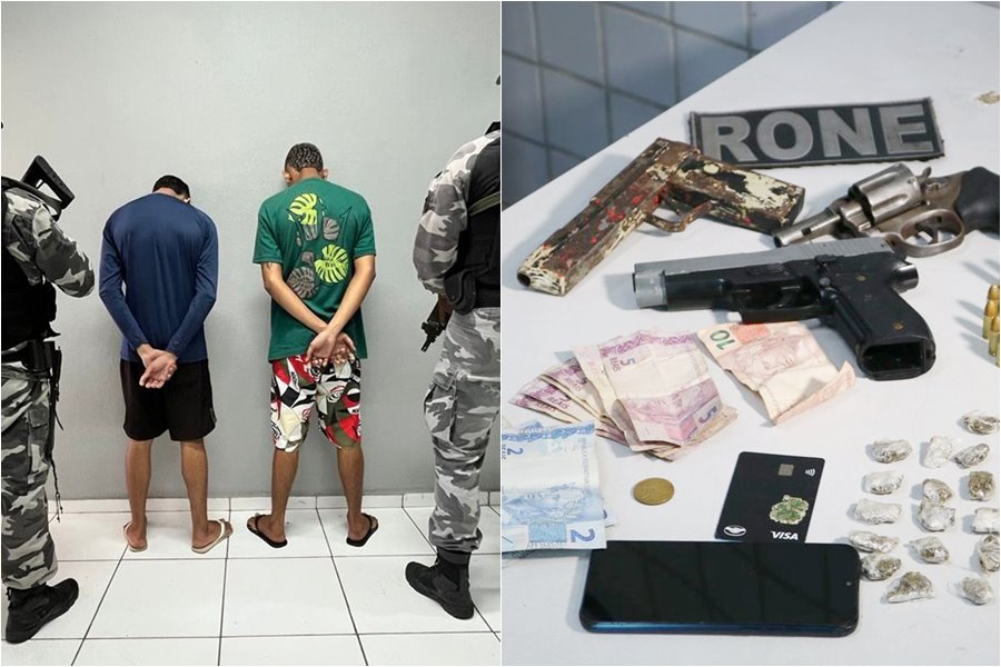 Seguindo determinações do nosso Comando-Geral e como também das diretrizes do Pacto Pela Ordem, conseguimos fazer a prisão de dois indivíduos na região da Santa Maria da Codipi. Segundo informações de inteligência, esses indivíduos estão envolvidos em alguns homicídios lá na área, como também fizemos a apreensão de duas armas de fogo; um revólver de fabricação caseira e um simulacro de pistola, como também entorpecentes. Fizemos a apresentação no DHPP para que o delegado possa ouvir o termo de declaração deles sobre os homicídios que ocorreram na região da Santa Maria da Codipi, explica.