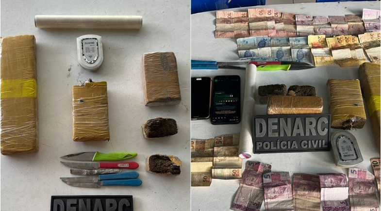 O Departamento Estadual de Repressão ao Narcotráfico (Denarc) prendeu, na manhã deste sábado (08/11), dois homens e apreendeu entorpecentes, balança de precisão e outros materiais usados no tráfico.