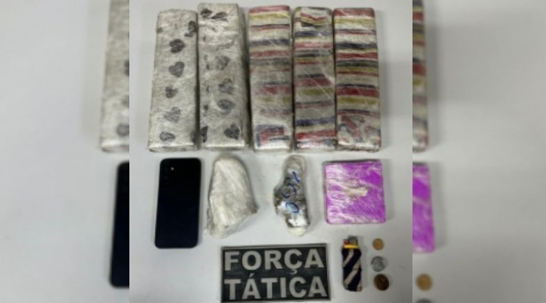 A PM informou que a residência do homem estava sendo monitorada devido à intensa movimentação de usuários de drogas. Ao realizar a abordagem, a polícia encontrou diversos entorpecentes, como: