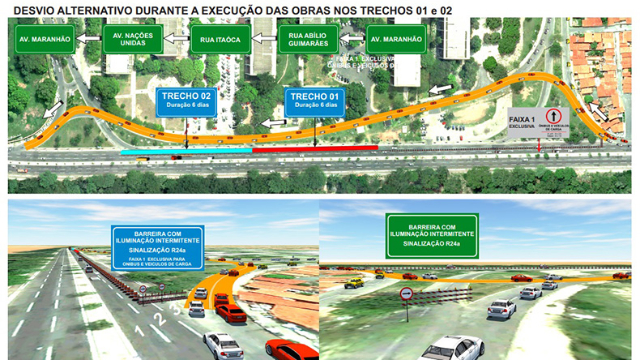 Conheça os três primeiros trechos a serem executados nesta primeira etapa na Avenida Maranhão, em frente ao Centro Administrativo, no sentido Sul/Norte: