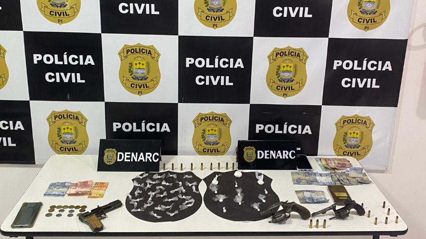 A Polícia Civil do Piauí prendeu em flagrante na tarde desta quinta-feira (01 três indivíduos suspeitos de tráfico de drogas, posse irregular de arma de fogo e receptação, nos Bairros Ilhotas, Vila Ferroviária e Murilo Resende, em Teresina, endereços estes que são relacionados, supostamente, à organização criminosa PCC (Primeiro Comando da Capital)