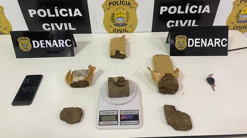 Na residência onde estavam os três suspeitos, a polícia encontrou tabletes de maconha mentolada (misturada com hortelã), que seria para deixar a droga com o cheiro mais apurado e aumentar o volume. No momento da abordagem, um comprador estava chegando ao local. Ele acabou escapando, mas deixou parte do entorpecente cair ao chão.