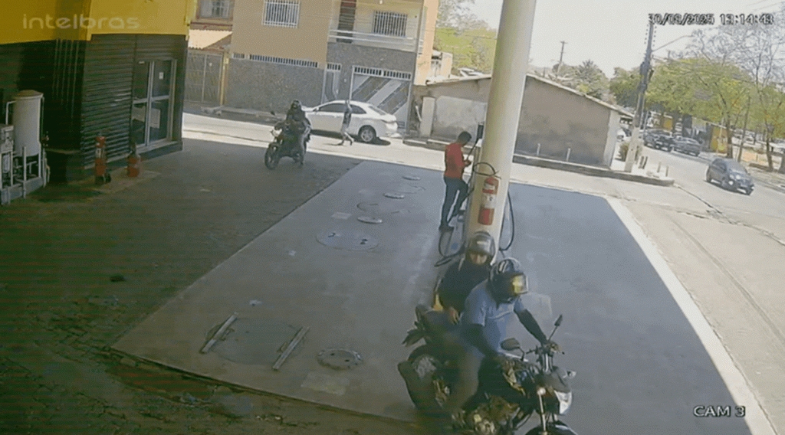 A presença do criminoso gerou correria entre clientes e funcionários. Um frentista e outro motociclista que estavam próximos se assustaram e buscaram abrigo, já que o assaltante aparentava estar armado.