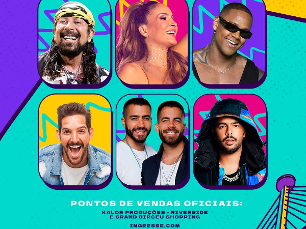 Os ingressos estão disponíveis na sede da Kalor Produções no shopping Riverside e Grand Shopping Dirceu, além da plataforma Ingresse.com.