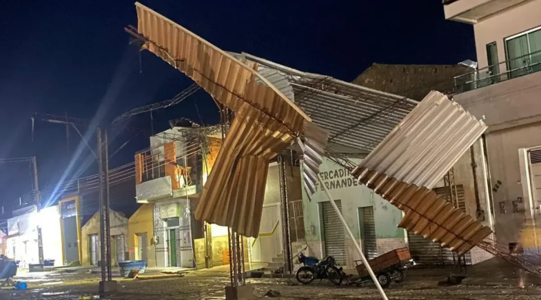 A estrutura de um antigo posto de combustível — atualmente desativado — colapsou parcialmente por causa da ventania. Em outro ponto da cidade, um posto em funcionamento teve trechos do telhado comprometidos, aumentando os riscos para trabalhadores e clientes.