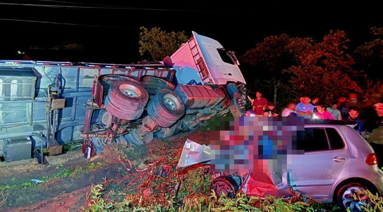 Os ocupantes do carro morreram ainda no local e ficaram presos às ferragens, sendo retirados com o apoio do Corpo de Bombeiros.