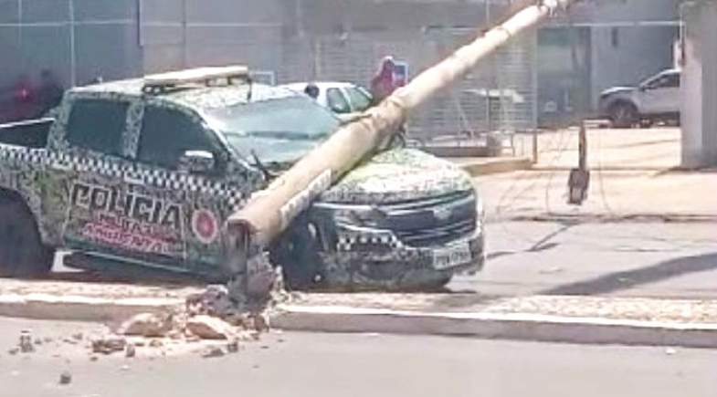 Viatura da Polícia Ambiental derruba poste após colisão na Avenida Barão de Gurgueia | Foto: Reprodução/WhatsApp