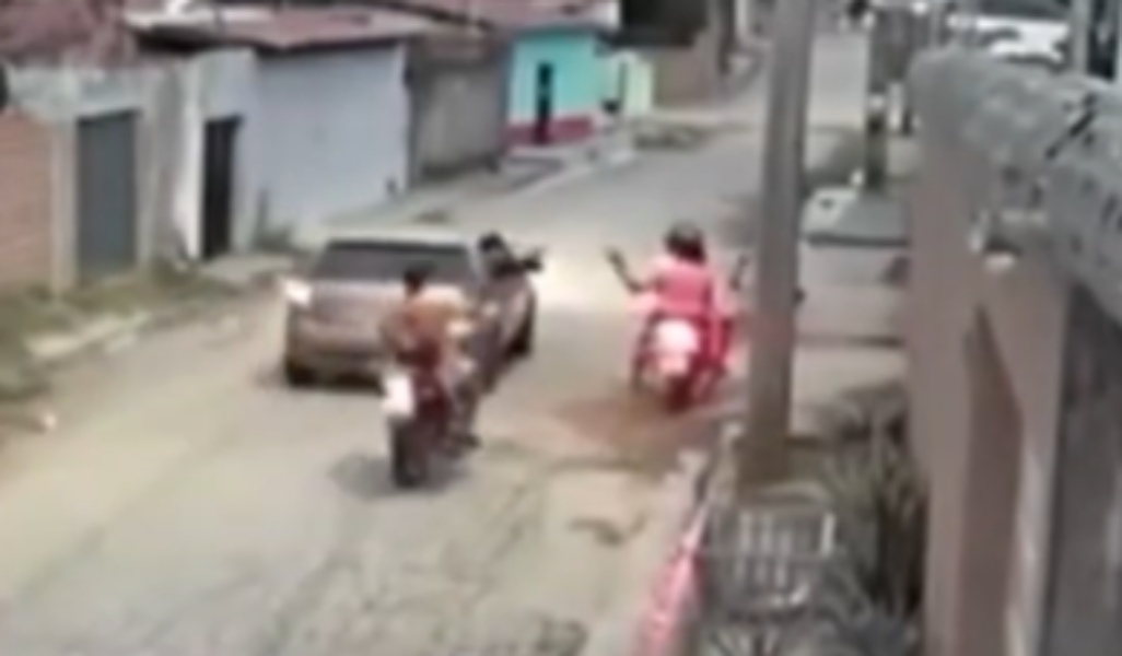 Câmera flagrou a tentativa de assalto contra o casal com um bebê de colo na zona Norte de Teresina, nesta segunda-feira (1º) | FOTO: Reprodução