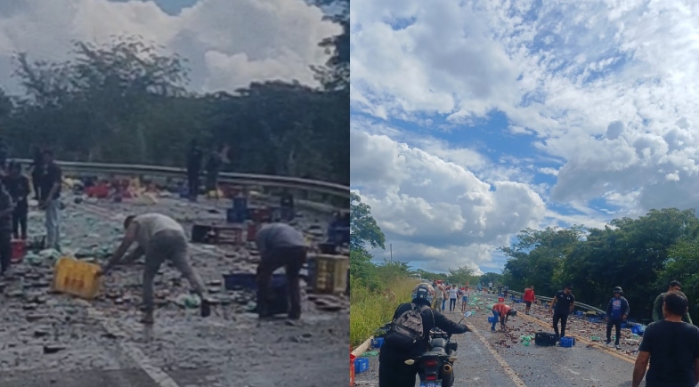 Segundo relatos, havia um caminhão carregado de cerveja que estava vindo de Teresina com sentido a Altos, e nessa curva fechada, ele acabou fazendo a curva rápido e acabou derramando essa carga. O caminhão não chegou a tombar, mas houve o derramamento da carga. Nesse momento, a carga que caiu acabou colidindo em outro caminhão, mas não houve vazamento nem danos mais grave, mas esse caminhão, seguiu viagem, disse Leandro Caldas, inspetor da Polícia Rodoviária Federal.