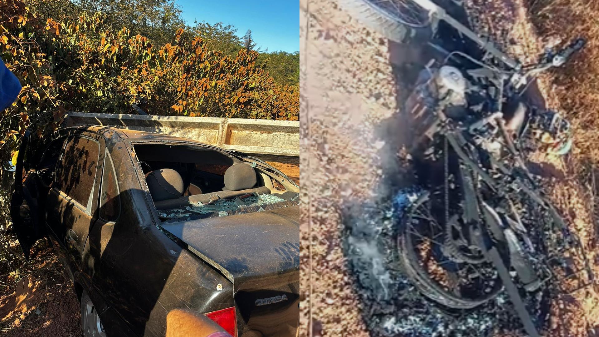 Ainda conforme o familiar, a roupa das vítimas chegaram a ficar grudadas na pele, por conta das chamas. Ambos estão na capital, Teresina, para receber o devido tratamento. Em vídeos é possível ver que após a colisão, o poste ficou caído por cima do carro e a motocicleta completamente destruída. Durante o ocorrido, a Polícia Militar da Cidade foi acionada.