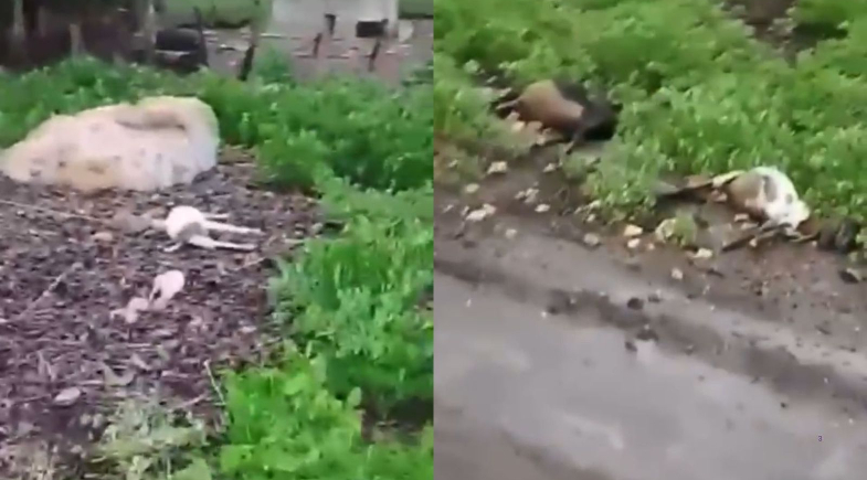 Imagens gravadas por populares mostram os animais mortos próximos a um poste da rede elétrica. O material circulou entre moradores como alerta para evitar a aproximação do local