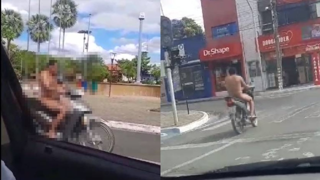 Pelo vídeo é possível perceber o homem conduzido uma motocicleta, modelo Honda Biz, por ruas da cidade e sem se importar tanto com a ausência das vestimentas e com os olhares curiosos.