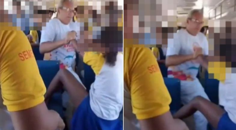 Nas imagens divulgadas nas redes sociais da família da menina, é possível ver o monitor, identificado como Jofran Pereira de Assis, segurando os dois braços de uma adolescente que está sentada em uma das poltronas do veículo. A estudante resiste e apoia os pés nas cadeiras ao lado para evitar ser retirada à força. Durante a situação, ela grita: “Não vou descer, me solta!”. O monitor insiste, mas desiste após alguns segundos.