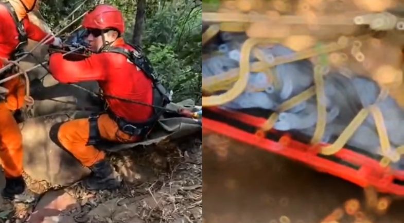 O caso ocorreu no dia 12 de outubro, quando o Corpo de Bombeiros foi acionado. Nos vídeos, é possível ver que a vítima estava em uma área isolada, sendo necessário montar um sistema de içamento com ancoragens em árvores nos dois lados do declive.