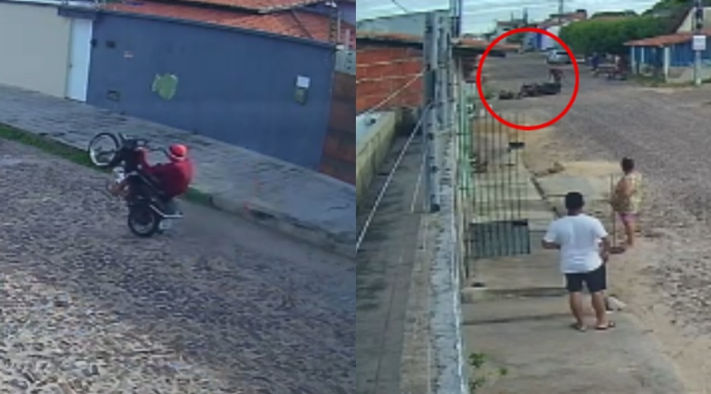 O acidente foi registrado por um câmera de monitoramento de uma residência. As imagens mostram o momento em que o motociclista surge com o pneu dianteiro levantado e, no momento em eu vai descê-lo, acaba atingindo um casal em outra motocicleta que ia passando no cruzamento.