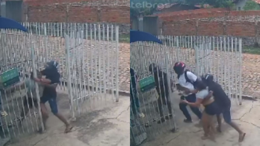 COMO OCORREU? O caso ocorreu na tarde desta segunda-feira (22). Conforme as imagens, um primeiro homem, de calça cinza e capacete levantado chega no local com um celular na mão, e aguarda do lado de fora. Posteriormente, ele aparece segurando o braço de uma mulher, que tenta se soltar. Neste momento, outros dois indivíduos surgem, de capacete, e puxam ela para dentro do estabelecimento.