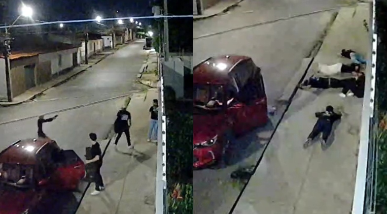 Um grupo de músicos foi rendido e assaltado na madrugada deste domingo (3), em frente a uma igreja no bairro Renascença II, zona Sudeste de Teresina. Câmeras de monitoramento registraram o momento em que cinco vítimas são obrigadas a deitar no chão por dois suspeitos que chegam em uma motocicleta.