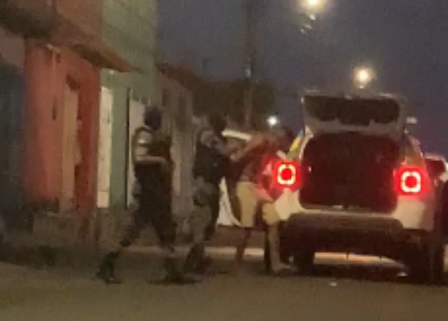 Durante a condução do preso, quando os policiais colocavam ele dentro da viatura, um dos policiais desferiu uma tapa no rosto do acusado de roubo. Populares registraram o flagrante e foram aos risos com a cena (confira abaixo).