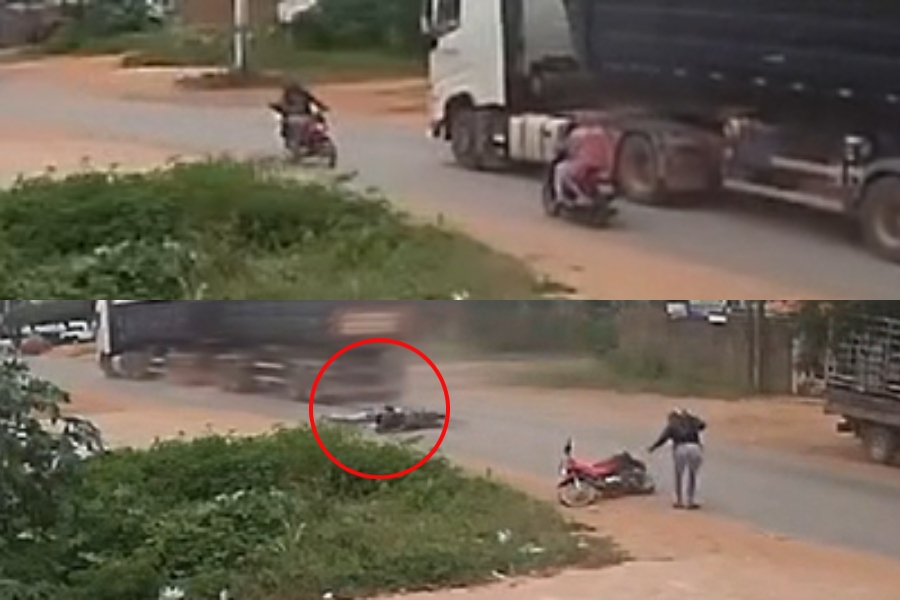 Um trágico acidente no início da tarde deste sábado (8) deixou uma mulher morta e outra gravemente ferida na cidade de Curimatá, localizada no extremo sul piauiense. Câmeras de monitoramento de um estabelecimento registraram o momento em que as vítimas, que estavam em uma motocicleta, colidiram com outro veículo e foram atropeladas por um caminhão.