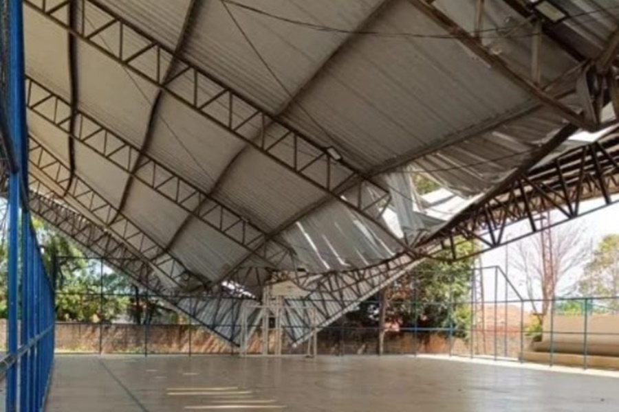 O teto da quadra poliesportiva da Praça da Juventude, em Oeiras (PI), desabou na tarde de quinta-feira (15), devido a uma forte ventania que atingiu a cidade. Felizmente, ninguém estava presente no local no momento do incidente, o que evitou feridos.
