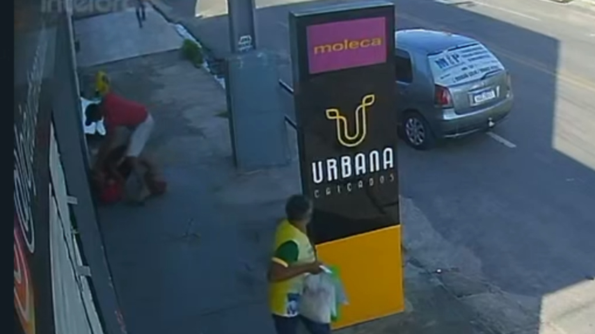 Em meio à ação, populares que passavam pela calçada onde vítima estava se apavoram e correm para dentro de estabelecimentos. Após o homem fugir de carro, pedestres e condutores de veículos param para ajudar a mulher.