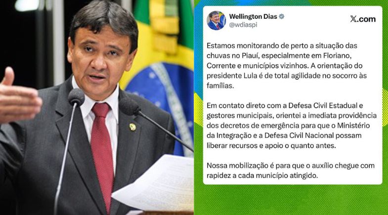 O ministro do Desenvolvimento e Assistência Social, Família e Combate à Fome do Brasil, Wellington Dias, anunciou que já fez a solicitação para que decretos emergenciais sejam estabelecidos para liberação de recursos e apoio no combate às fortes chuvas que atingem o Piauí.