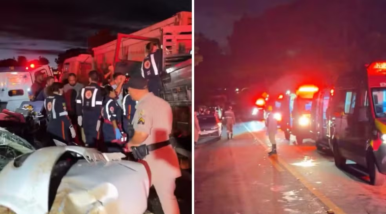 O Corpo de Bombeiros atendeu a ocorrência e informou que, entre as vítimas, uma mulher foi encontrada em óbito do lado de fora do carro e um homem, no banco do passageiro do mesmo veículo.