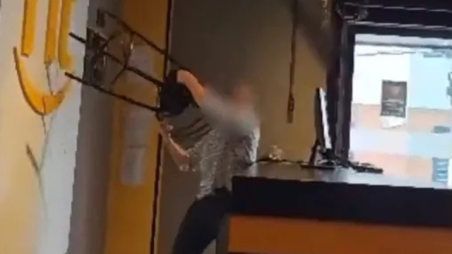 Um vídeo compartilhado nas redes sociais mostra uma mulher, que é aluna de uma academia, quebrando computadores com um banco na recepção do local. O caso foi registrado na última terça-feira(25) em Cariacica, região da Grande Vitória, no Espírito Santo. Um dos computadores do local ficou completamente destruído e não satisfeita, ela vai até um outro computador do estabelecimento que está sobre uma bancada e o derruba no chão.