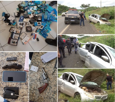 Em alta velocidade, o automóvel do trio capotou na BR-316, próximo ao retorno que dá acesso à cidade de Caxias. Os policiais abordaram o veículo e deram voz de prisão aos assaltantes.