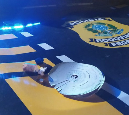 Após fazer a revista pessoal e no interior do veículo, foram encontrados cerca de 19 comprimidos de anfetaminas da marca Nobésio Extra Forte na cabine - Foto: Divulgação/PRF