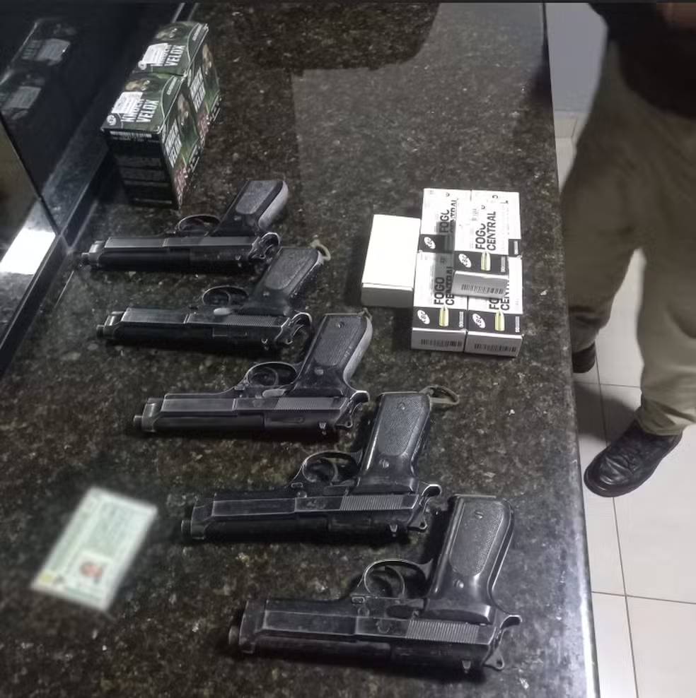 As armas encontradas com o suspeito são do modelo Beretta, calibre 9 mm. Além delas, foram localizadas na casa do suspeito 280 munições de 9 milímetros e 50 munições de calibre 12, porém não pertencentes ao Exército, segundo a SESP-PR.
