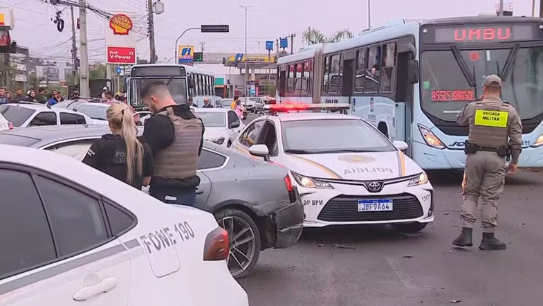 Dois homens morreram na manhã desta quinta-feira (2) em Alvorada, na Região Metropolitana de Porto Alegre, após um ataque a tiros contra um carro. O motorista baleado perdeu o controle do veículo e acabou atingindo quatro carros e um ônibus antes de bater em um poste.