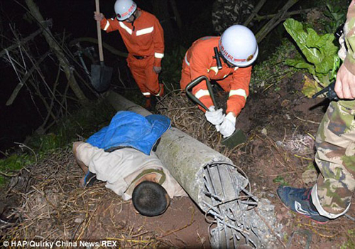 Um bandido que tentava roubar aço que reforçava o assentamento de um poste em Guang"an, na província de Sichuan, sudoeste da China, se deu muito mal depois que seu plano falhou.