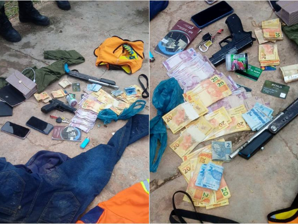 Policiais do 8º Batalhão da Polícia Militar foram acionados e iniciaram perseguição ao bando. Por conta do sistema de segurança, o veículo roubado travou, momento em que os suspeitos deixaram o veículo e entraram em um matagal, mas acabaram capturados após cerco policial.