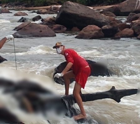 O delegado responsável pelo caso, Jackson Vale, disse que o corpo estava preso nas pedras e foi localizado por uma pessoa no final da tarde de segunda (28).