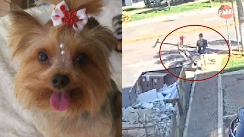 A yorkshire foi roubada em um “assalto” na manhã deste domingo (10) toda a ação dos criminosos foi registrada pelo circuito de segurança de uma rua. Nas imagens obtidas é possível ver o noivo da tutora caminhando com a cadela Cherie, de 6 anos, quando dois homens se aproximam do rapaz.