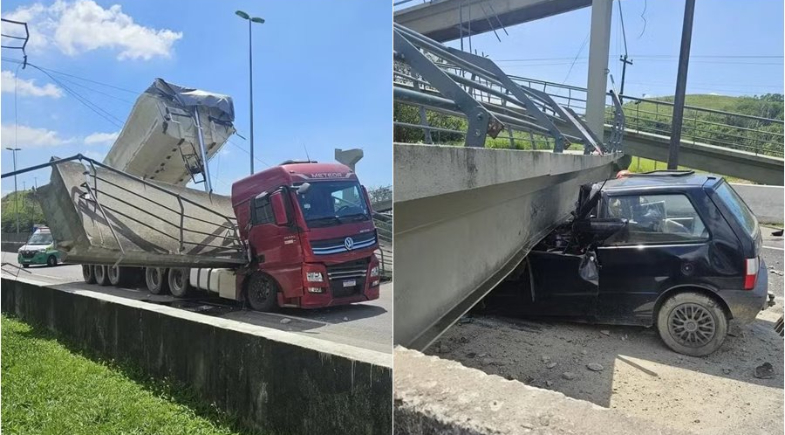 Ainda segundo a Ecovias Rio Minas, responsável pelo trecho, o caminhão envolvido era uma caçamba, que trafegava pela via quando ergueu a caçamba inadvertidamente e acabou atingindo a estrutura da passarela.