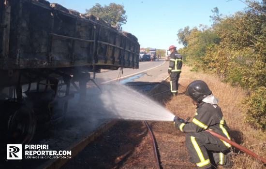 Um caminhão pegou fogo na BR 222, em Piripiri. O caso ocorreu nas proximidades da entrada de Domingos Mourão. O fato ocorreu por volta de 6h desta sexta-feira (13). Felizmente, ninguém ferido.