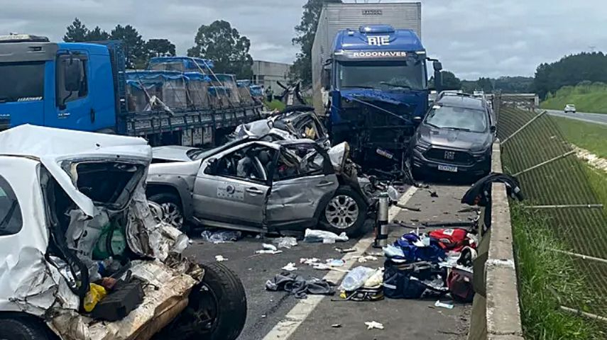 De acordo com a PRF - Polícia Rodoviária Federal, entre os veículos envolvidos estão dois caminhões e quatro carros. Todos os motoristas realizaram o teste do bafômetro, que não apontou consumo de álcool.
