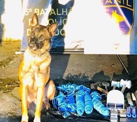 Cão farejador localizou explosivos. (Foto: REPRODUÇÃO-PM-SP)