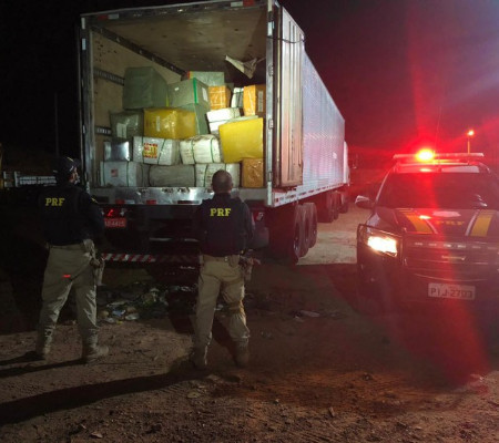 A Polícia Rodoviária Federal (PRF) realizou, na noite de sábado (22), a apreensão de uma carga de eletrônicos, perfumes e bebidas que estava dentro de uma carreta. A ação aconteceu na BR-135 em Bom Jesus, Sul do Piauí.