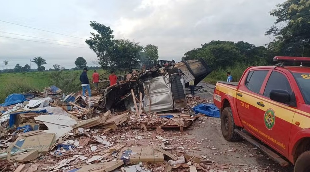 Uma pessoa, não identificada, morreu após um acidente entre uma caçamba e uma carreta em Porto Franco, no Maranhão. Os veículos pegaram fogo na colisão.
